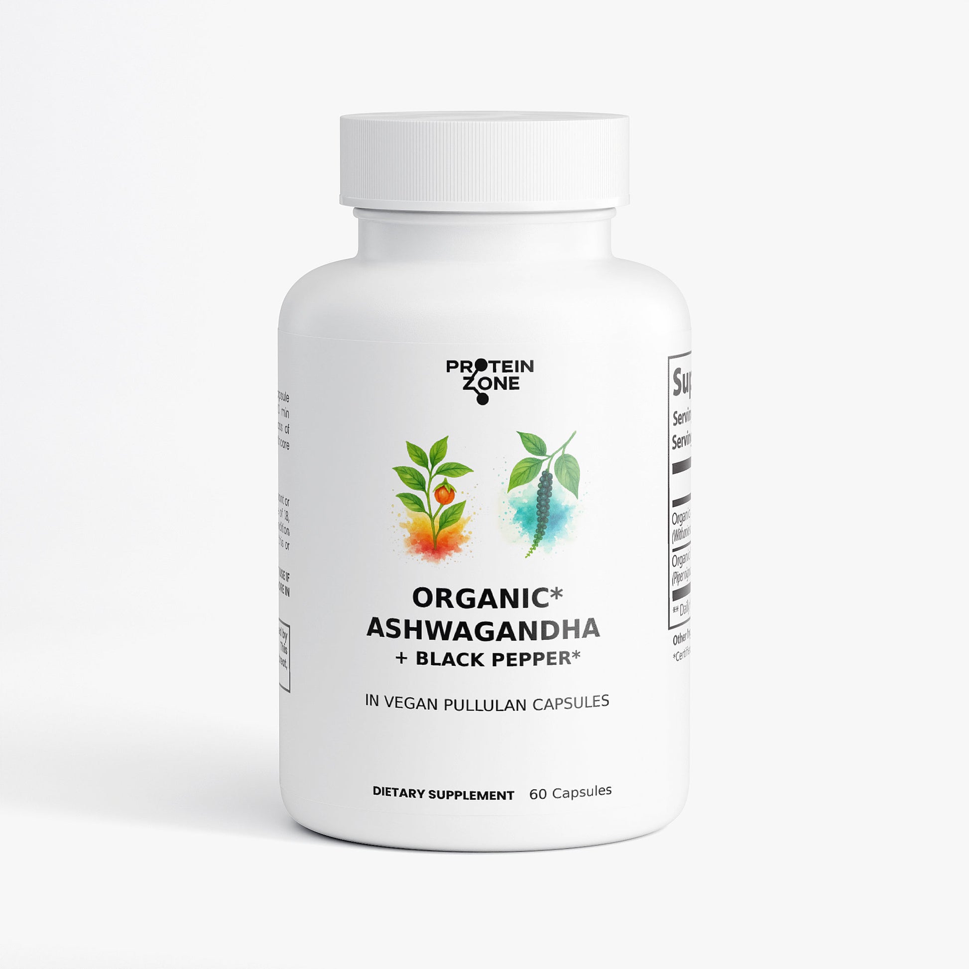 Organic Ashwagandha (Withania somnifera) (root), Organic Black Pepper (Piper nigrum) (fruit), Pullulan Capsules.