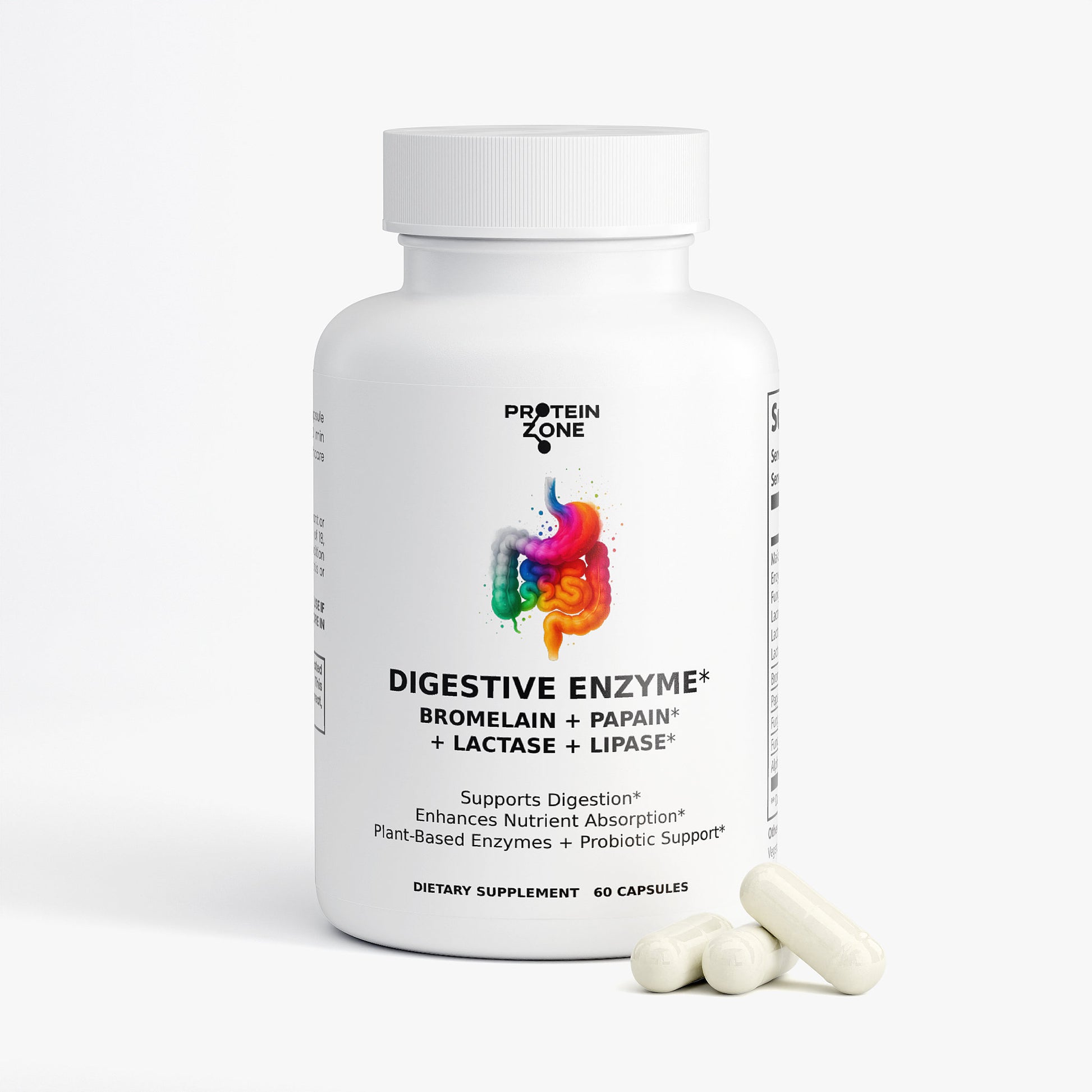 - Key Features: Makzyme-Pro™ Enzyme Blend, Probiotics, Plant-Based, supports digestion of Fats, Protein, Carbs, & Dairy.