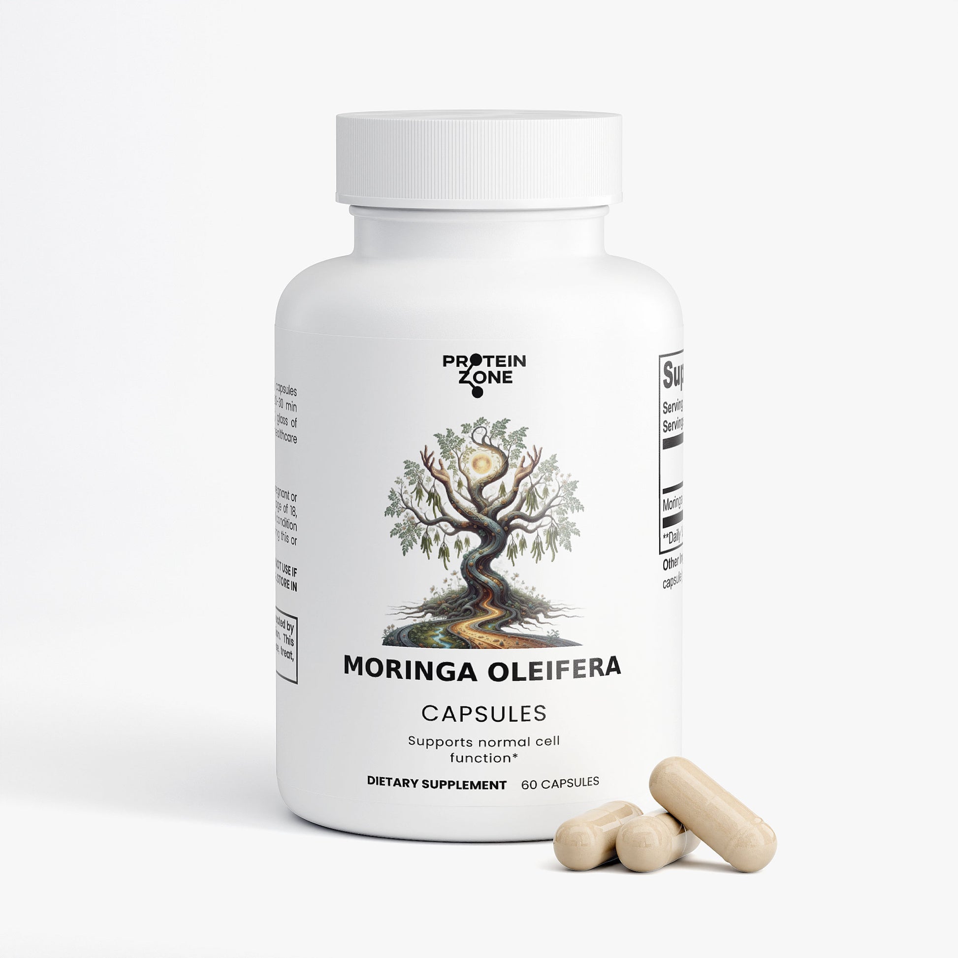 Moringa Oleifera, often revered as the "tree of life" or "miracle tree", is native to Northern India and has been a part of traditional herbal practices for generations. This supplement utilizes only the leaves of the tree, which are known for their exceptional nutritional density and diverse array of phytochemicals. The leaves are harvested with care to maintain their natural properties, providing a concentrated source of proteins, minerals, vitamins, and antioxidants. This supplement is designed to seamlessly complement your daily nutrition and support overall physiological balance.